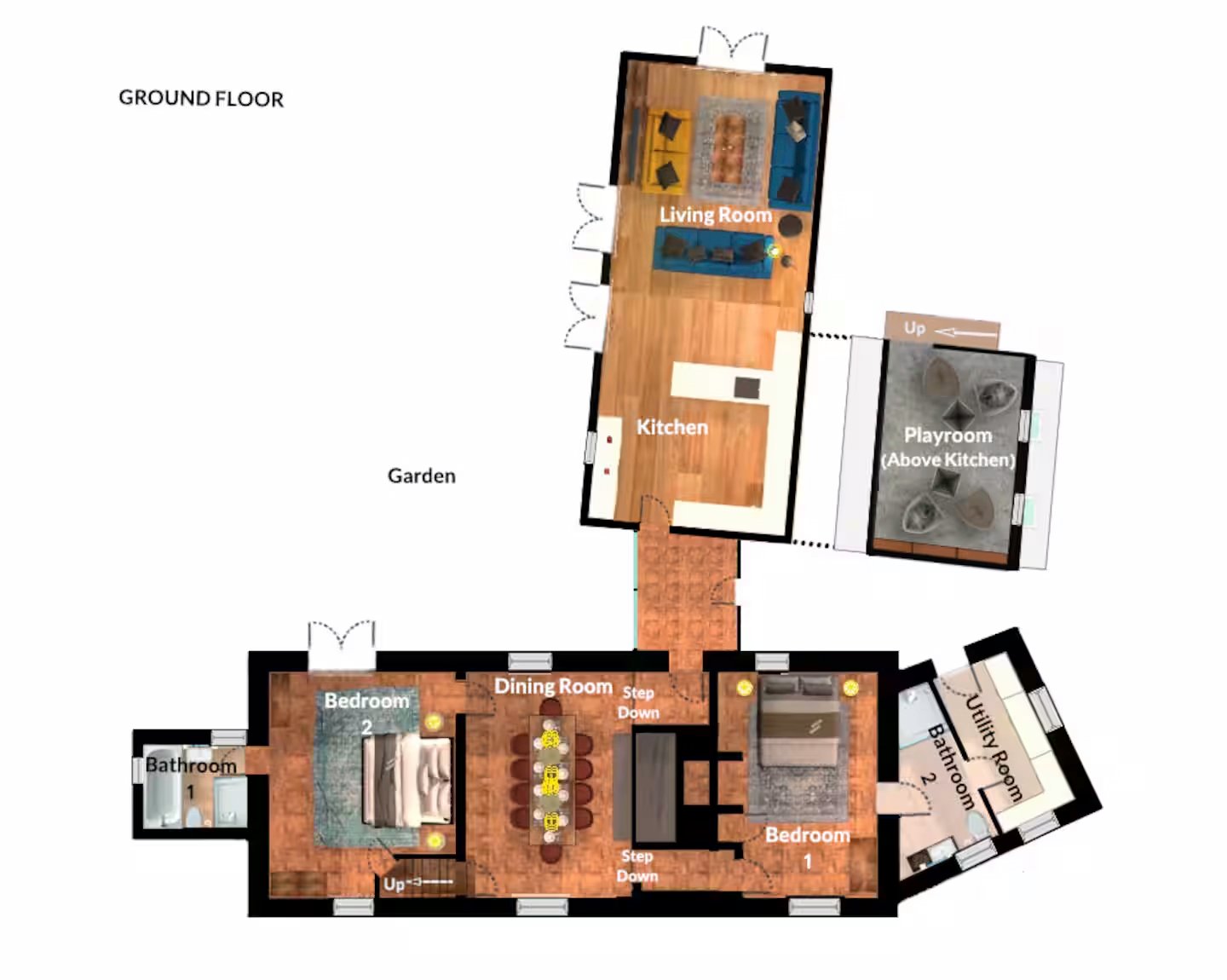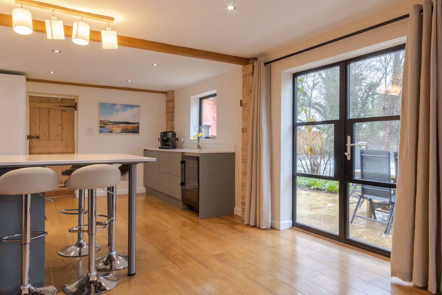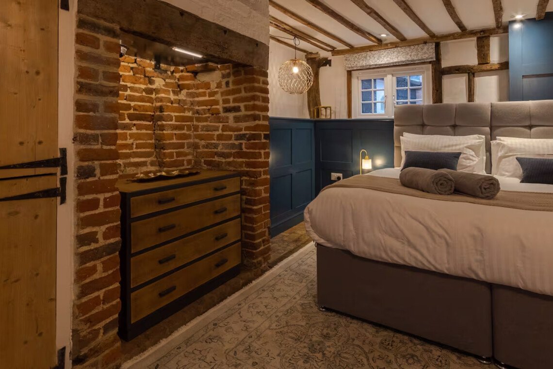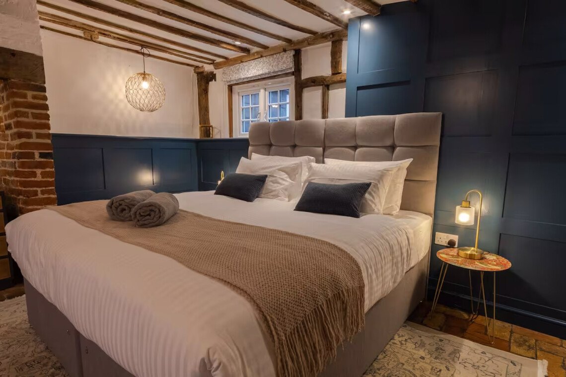 As soon as you step foot in this beautiful cottage, you’re welcomed by a very stylish yet highly comfortable open-concept design living area. It has been recently lovingly renovated but still retains many original aspects alongside contemporary additions, complementing the picturesque location on the banks of River Ouse. The fully equipped kitchen and its dining area are where you’ll prepare and enjoy delicious meals with your loved ones before relaxing in the living room, setting the stage for memorable evenings. Plenty of natural light comes through the large windows, making the home very bright during the day and connecting it to the garden outside. Tastefully picked furniture accent the brick and timber floors under oak beamed ceilings. If you are looking for a formal dining experience, you’ll love the rustic dining room with a large fireplace dating all the way back to 1590. Retreat to five comfortable bedrooms, which feature 5☆-resort comforts that allow you to rest after an exciting day of outdoor sightseeing and adventures. Step out into the massive garden and meadow, where you can soak up the sun, catch a breath of fresh air and or take a picnic across the meadow to the gorgeous riverfront setting. This stunning historic home offers a plethora of exciting areas and amenities, and we can’t wait for you to experience them all. ★ LIVING ROOM ★ The awesome lofty barn conversion immediately feels like home! Find your place on one of the comfy sofas, cuddle up with a good book, or discuss your upcoming adventure with the gorgeous garden views. ✔ Three Comfortable Sofas with Pillows ✔ 65″ Smart TV with Netflix ✔ Large Coffee Table ✔ Access to the Garden Children will love the loft area above the living room, where they can hide from the adults and have hours of fun. ✔ Comfy Bean Bags ✔ Board Games ★ KITCHEN & DINING ★ The kitchen is fully furnished with top-of-the-line appliances, making it suitable for preparing any meal that comes to mind, from simple breakfasts to three-course gourmet dinners. The roomy countertops and central bar offer ample space for culinary creativity. ✔ Microwave ✔ Induction Hob ✔ Double Oven ✔ Toaster ✔ Coffee Makers (Filter Coffee, Espresso Machine) ✔ Hot Water Kettle ✔ Refrigerator ✔ Wine Fridge ✔ Dishwasher ✔ Sink – Hot & Cold Water ✔ Trays ✔ Glasses ✔ Silverware ✔ Pots & Pans ✔ Picnic Bag Have a few drinks at the kitchen bar while the designated family chef prepares tasty bites in the kitchen. Once the food is ready, serve it in the original dining room by the large fireplace and savour a delicious feast with loved ones. ✔ Dining Table with Seating for 10 ✔ Large Wood-Burning Fireplace ✔ Kitchen Bar with Seating for 5 (in the open-floor living area) ★ SLEEPING ARRANGEMENTS – 5 BEDROOMS ★ After an exciting day of sightseeing, you will be looking to rest for an equally entertaining tomorrow. Once you are ready to relax, please visit these comfortable bedrooms. ♛ Bedroom 1 (Ground Floor): Super King-Size Bed, Ensuite shower ♛ Bedroom 2 (Ground Floor): Super King-Size Bed, Ensuite Bathroom. (please note this room has a beam at a height of 6ft) ♛ Bedroom 3 (First Floor): Two Single Beds ♛ Bedroom 4 (First Floor): King-Size Bed ♛ Bedroom 5 (First Floor): Super King-Size Bed, Ensuite Shower room. (please note that in order to access the ensuite to this room you need to step over a beam) All Super Kings can be turned into 2 singles if preferred. (10 days notice needed) All bedrooms feature a similar set of amenities. ✔ Premium Linens, Sheets, and Pillows ✔ Some featuring Dressers with Spacious Drawers ✔ Wardrobes with Hangers and Shelves ✔ Night Stands with Reading Lamps and Charging Ports ★ BATHROOMS ★ In addition to three ensuite bathrooms, the cottage has the Main Full bathroom catering to bedrooms #3 & #4. Each bathroom boasts pampering towels and essential toiletries, ensuring a worry-free stay. ✔ Soaker Tub + Separate Walk-In Shower (in Main Bathroom) ✔ Bathtub with a Shower ✔ Walk-In Shower ✔ Mirror ✔ Toilet ✔ Towels ✔ Essential Toiletries ★ OUTDOORS ★ A breathtaking home like this would not shine in its best light if it did not have a private outdoor space and meadow where you can relax, catch a breath of fresh air, gaze at the gorgeous surroundings and soak up the sun. As well as the resident squirrels the meadow is frequently visited by local wildlife including deer, pheasants and an abundance of wild birds. ✔ Spacious Lawn ✔ Charcoal BBQ ✔ Terrace with outdoor eating for 10 ✔ Meadow ✔ Picnic Tables at the river ✔ Swing Set Discover your happiness in this lovely historic home, whether it means disconnecting for a while, snuggling up on the couch, enjoying a movie, or admiring the riverfront setting at the bottom of the meadow. Guest access The cottage is exclusively yours, without interruption during your stay, so relax, unwind, and make yourself at home. Other than the already mentioned amenities, our home is also equipped with the following: ✔ High-Speed Wi-Fi ✔ Self Check-In (Lockbox) ✔ Heating ✔ Iron/Board ✔ Utility Room with a Washer/Dryer ✔ Free Parking Other things to note ★ CLEANING & SANITIZATION ★ Heath, safety, and well-being of our guests are of utmost importance. For this reason, we use a thorough cleaning process after each check-out. ★ PET-FRIENDLY HOME ★ Bring your furry friends along for an exciting vacation. They’ll get to enjoy and run around the spacious garden while you relax on the comfy patio. ★ NO SMOKING INSIDE ★ Please refrain from smoking inside the home! Any smoking evidence will result in odour removal and furniture cleaning fees. ★ NO PARTIES/EVENTS ★ We kindly ask you to treat our home as your own to preserve its pristine condition for future guests and your return visits. It is not suitable for larger parties of more than 10. Thank you very much for your understanding